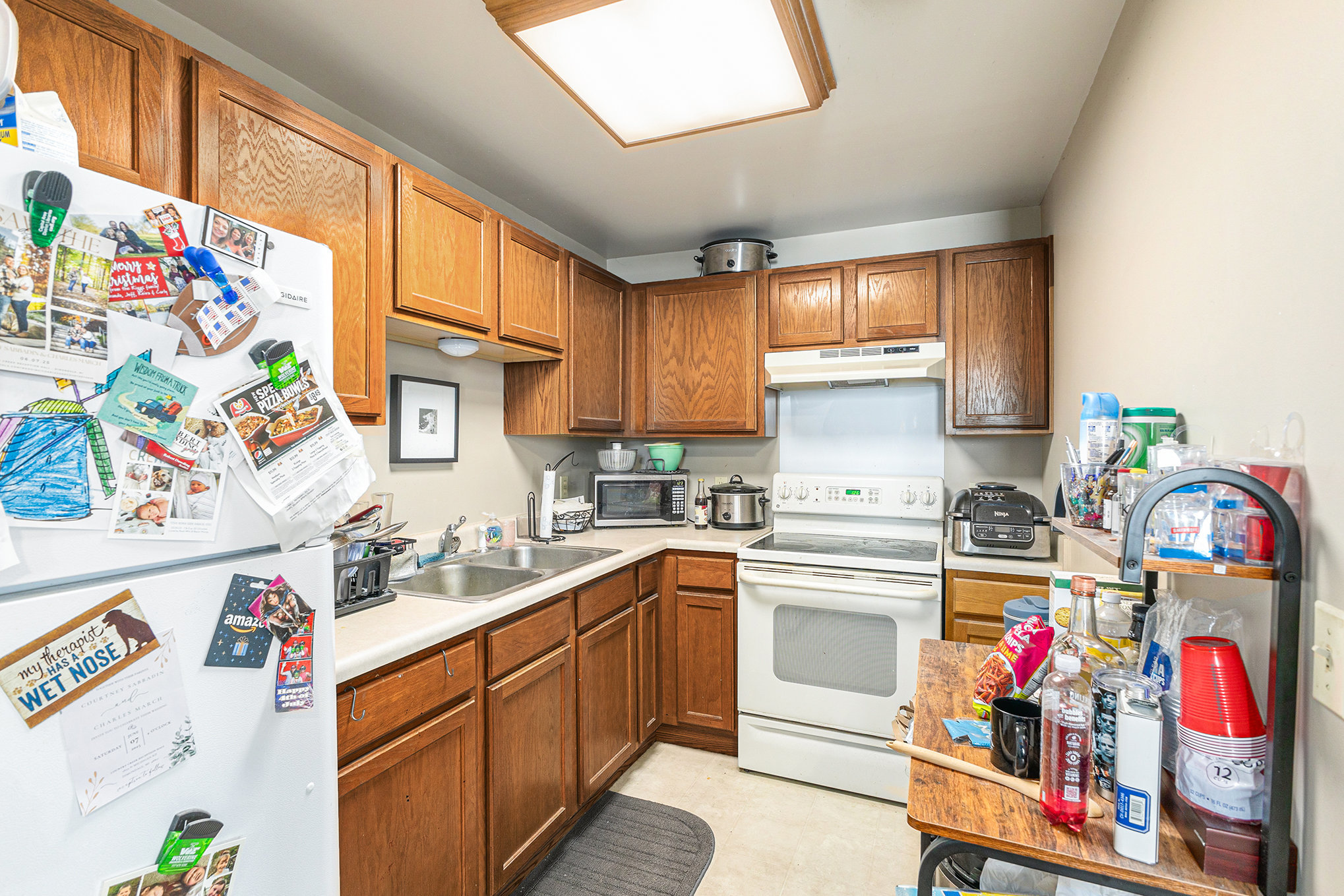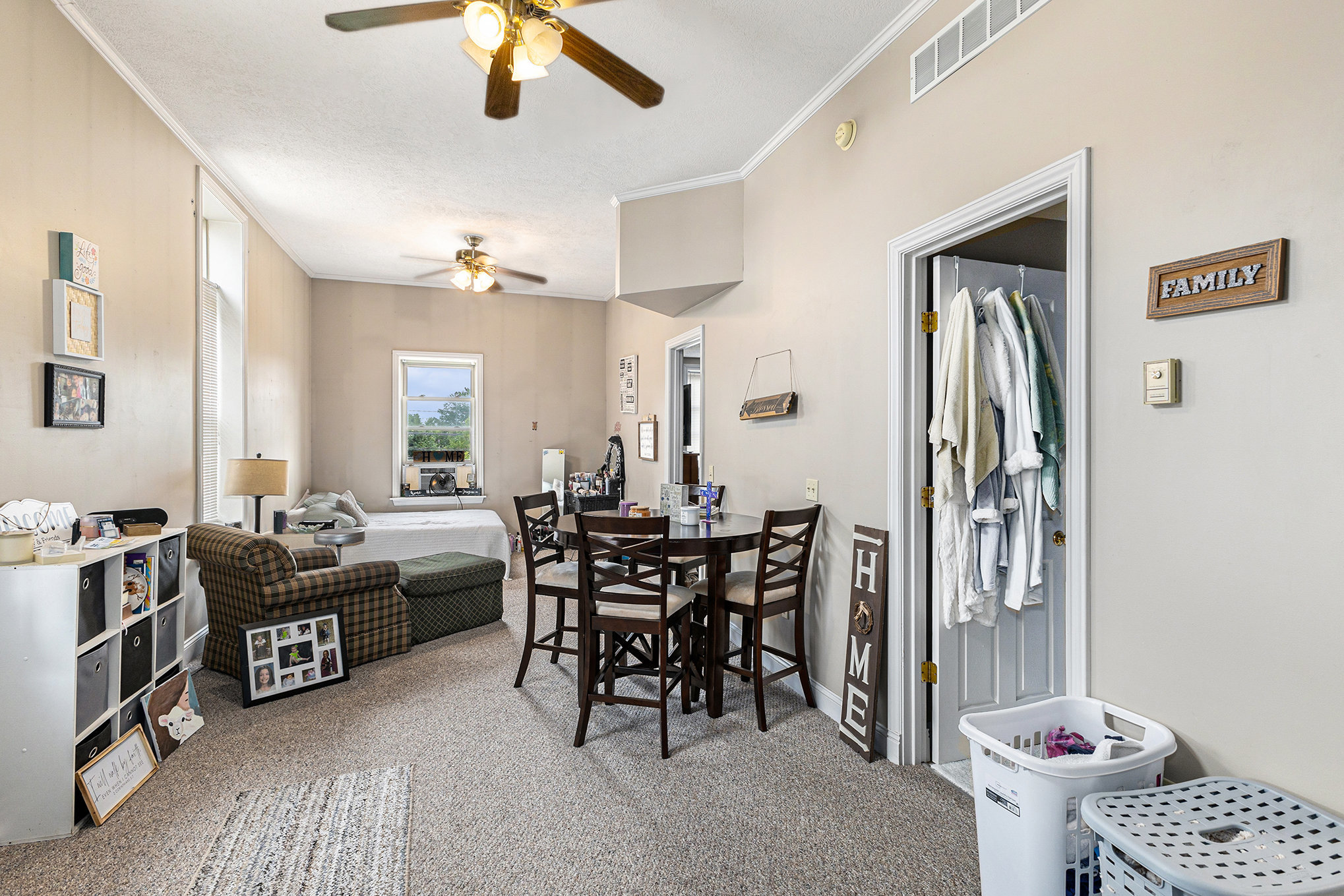A separate side entrance leads upstairs to two updated rental units.