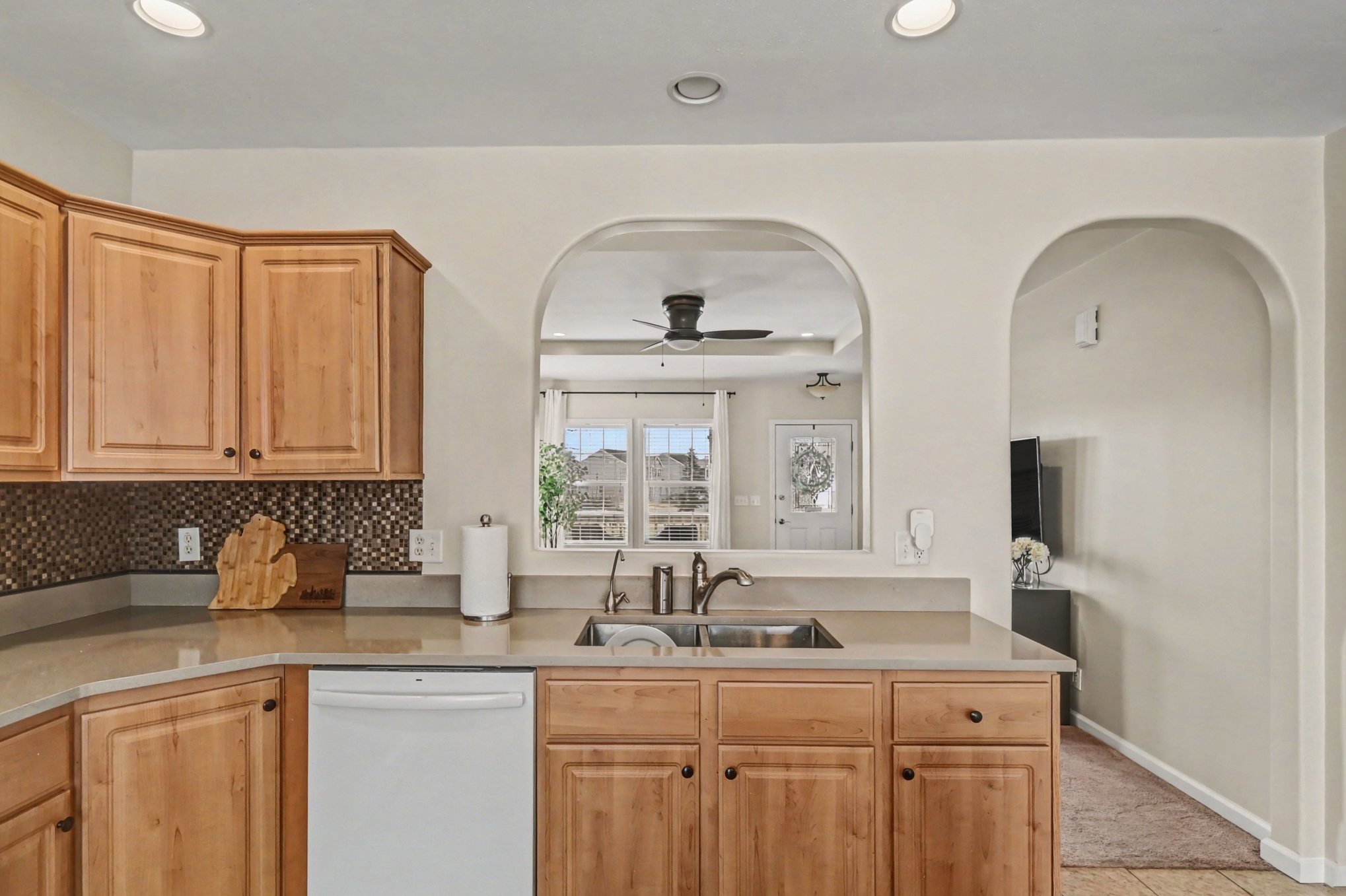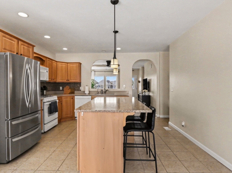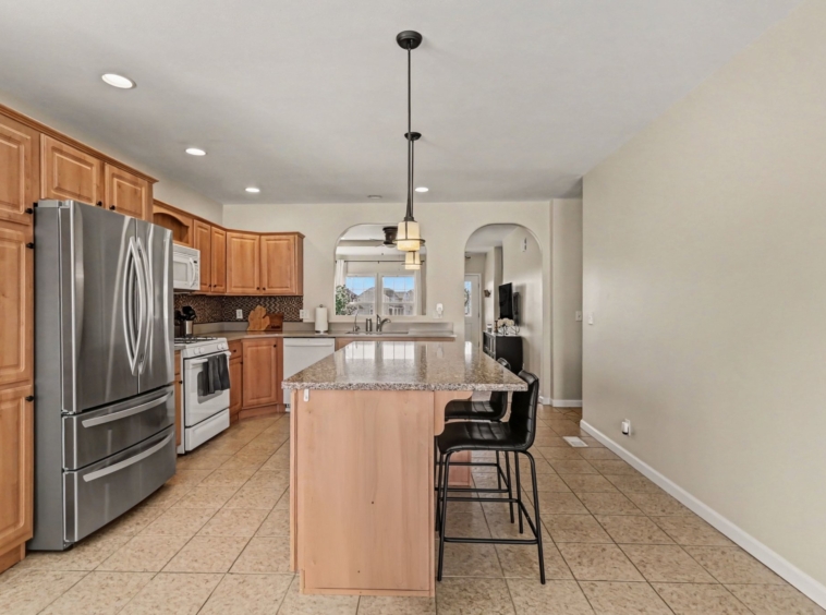 The spacious kitchen offers abundant cabinetry, ample counter space, and plenty of room to cook, bake, and gather.