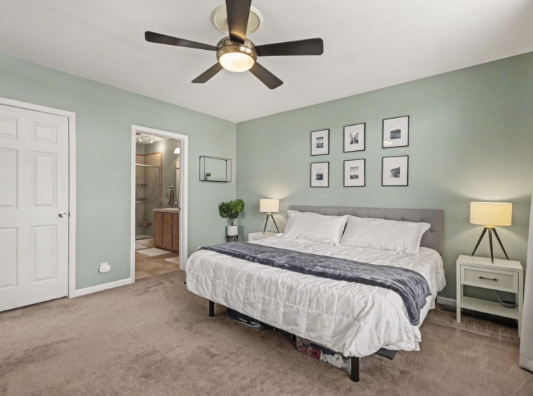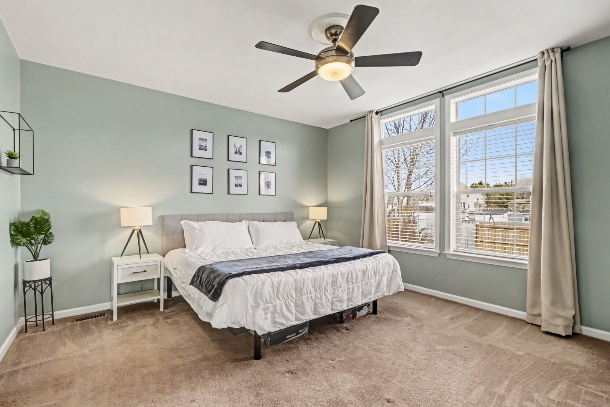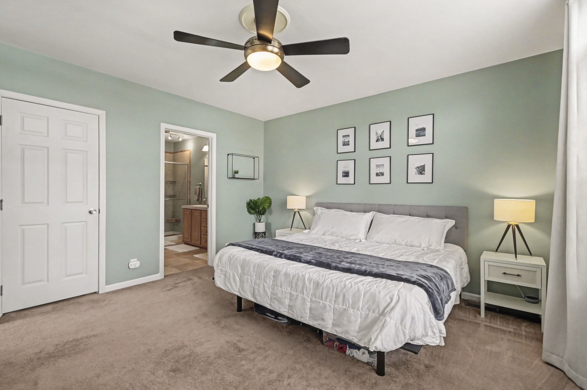 The desirable split-bedroom ranch layout provides two generously sized bedrooms at the front of the home, while the private primary suite is tucked away at the back for added tranquility.