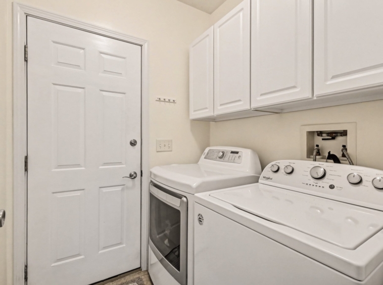 Convenience is key with a main-floor laundry room located just off the garage entry.