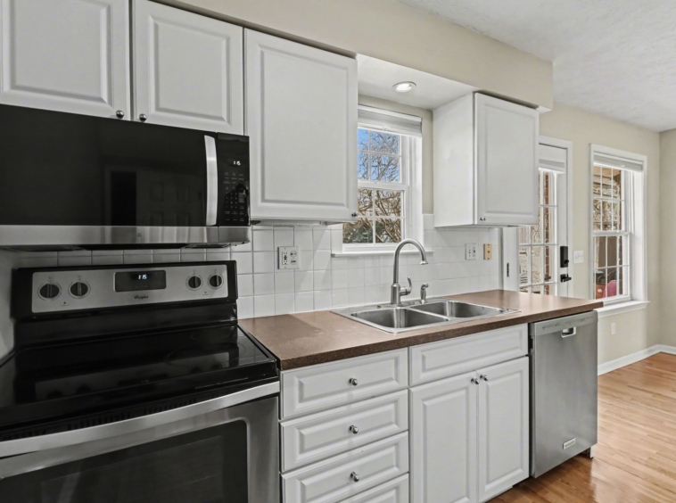 The main level offers a spacious living room, dining area, and kitchen with newer appliances, perfect for everyday living and entertaining.