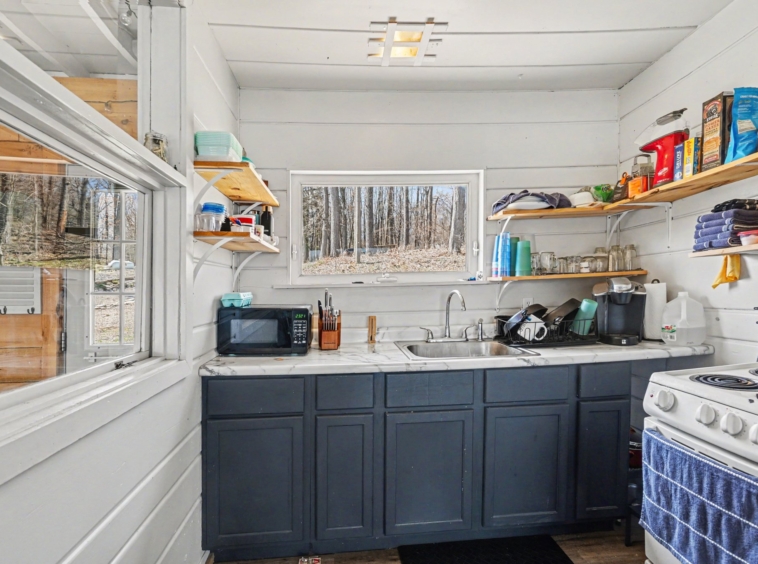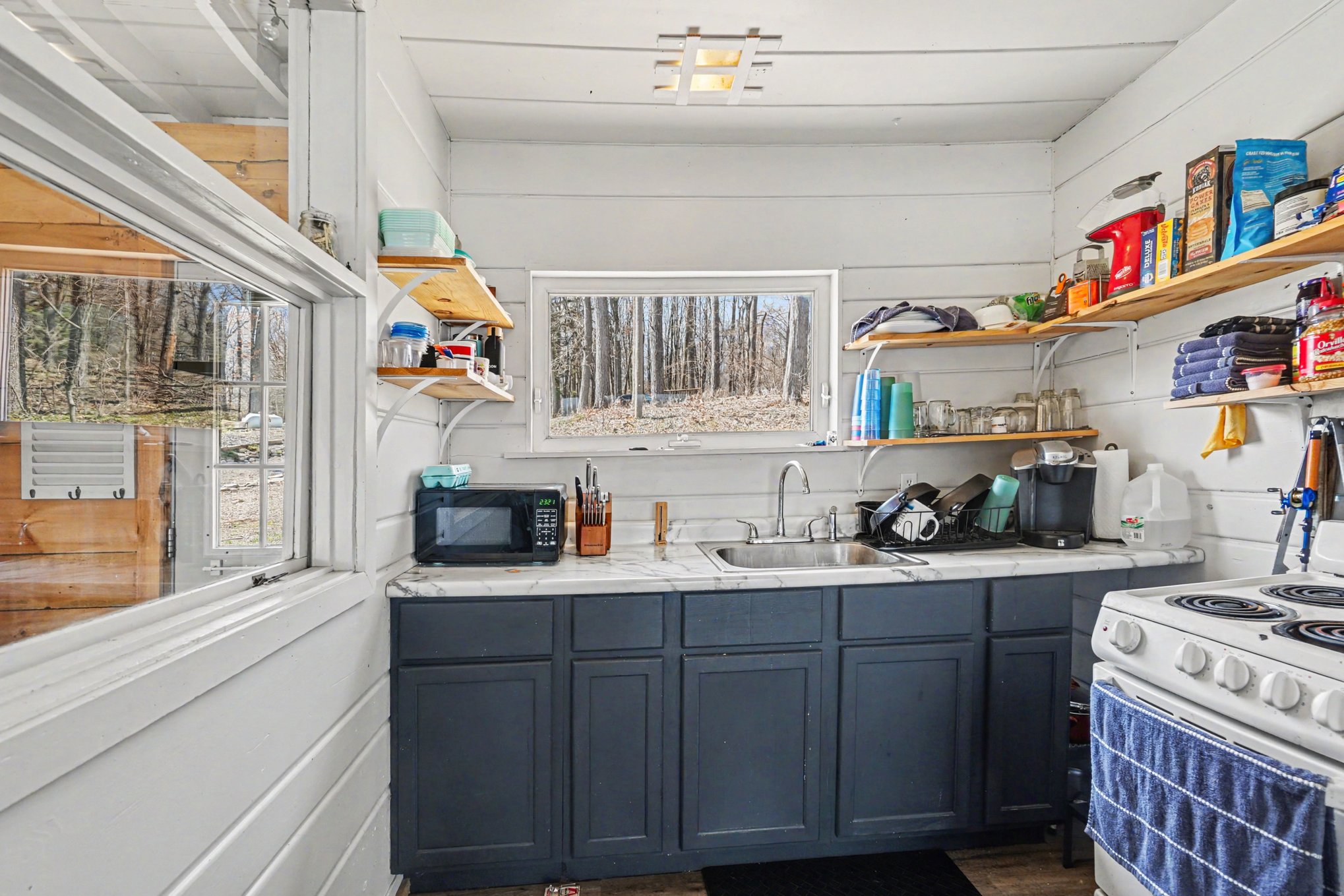 This cozy cottage features a great overlook of the lake to watch the sunset, go boating, kayaking, fishing, or swimming.